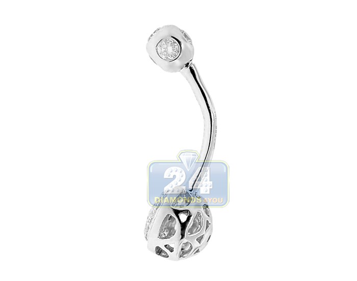 14K White Gold 0.50 ct Diamond Illusion Womens Belly Ring