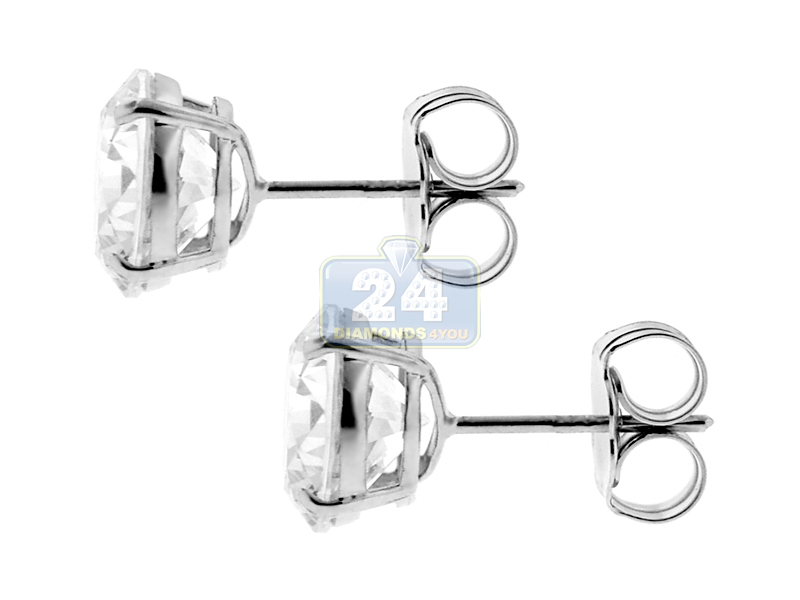 14K White Gold 0.50 ct Round CZ Push Back Stud Earrings 4 mm