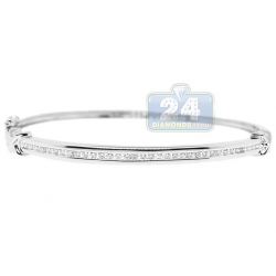 Illuminate your wrist with diamond beauty! This classic diamond bangle bracelet is masterly crafted in cool 14k white gold, and highly polished for very smooth finish. The front is channel set with 0.52 carat of gleaming white round brilliant-cut diamonds. Featuring X accents on the sides, our women's diamond bracelet has inner length of 7 inches and width of 4 mm. This elegant design will grab everyone's attention!