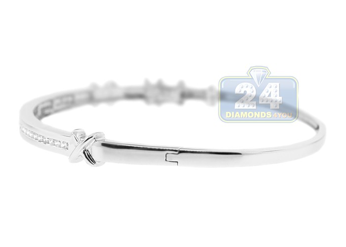 14K White Gold 0.52 ct Diamond Womens X Bangle Bracelet