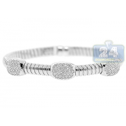 14K White Gold 0.54 ct Diamond Station Womens Cuff Bracelet