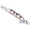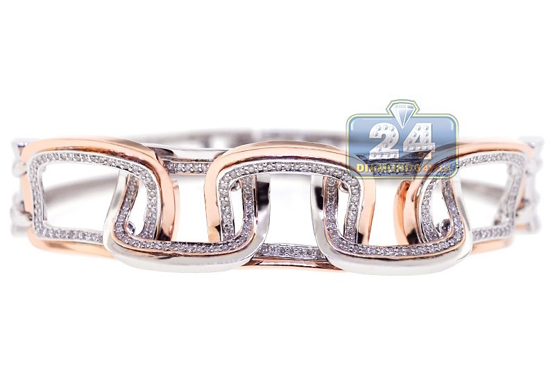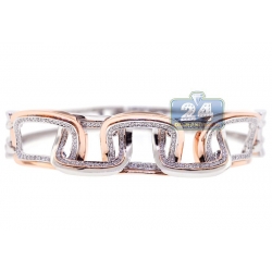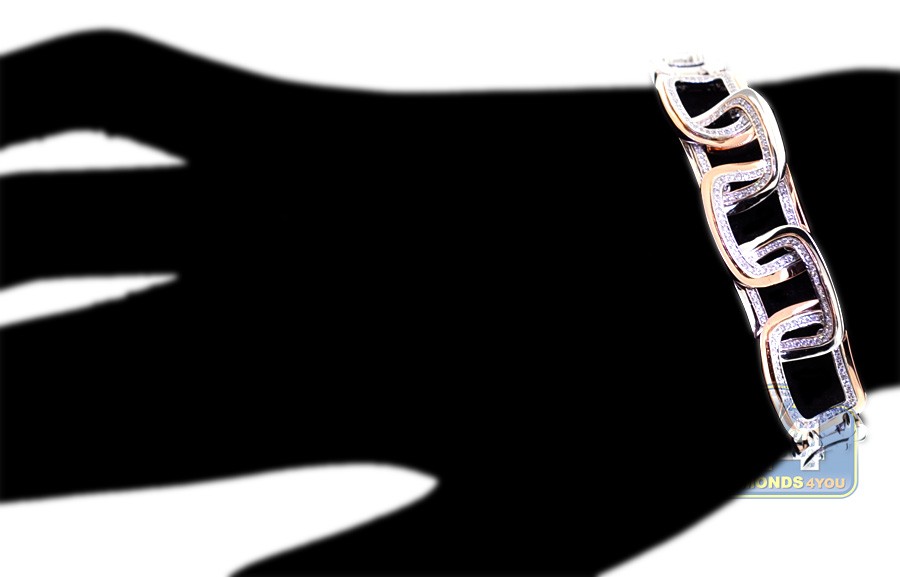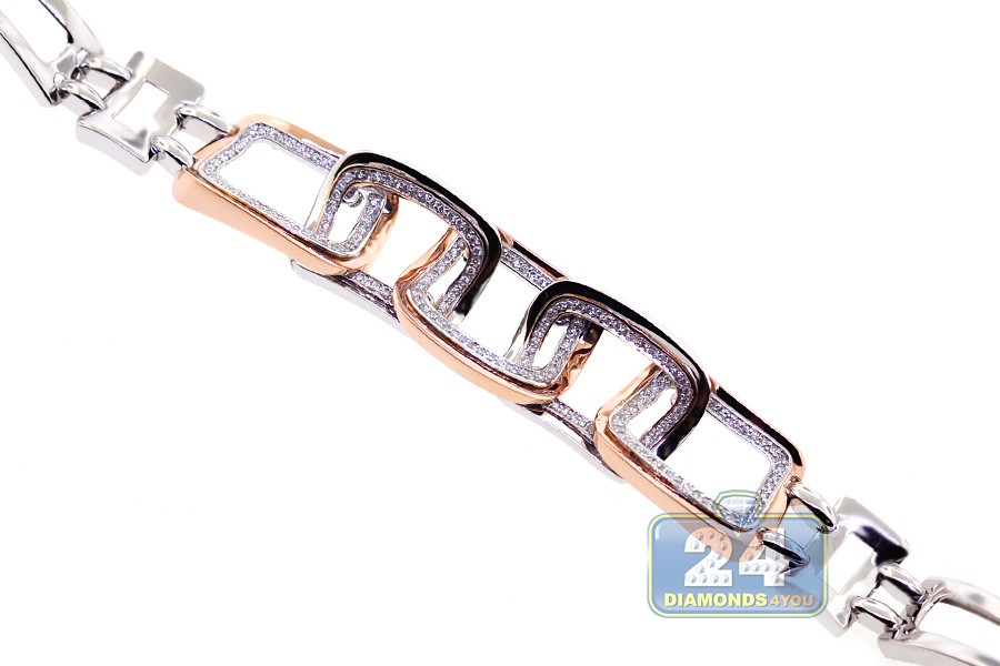 You don't need a special occasion to wear this lovely diamond link bracelet! Beautifully crafted in cool 14 karat white with high-polished finish, it has rose gold plated accents. The links are set with 0.58 carat of icy white round brilliant-cut natural diamonds. Our women's diamond bracelet has length of 7 inches and width of 14 mm. Chic look for any event!