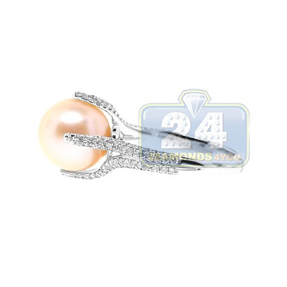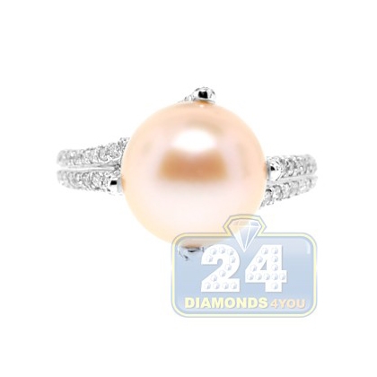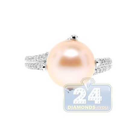 14K White Gold 0.60 ct Diamond Womens Pink Pearl Ring