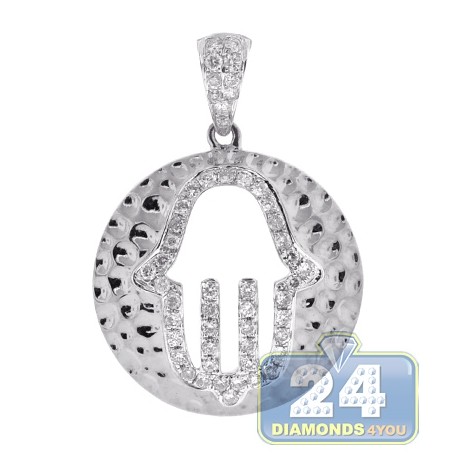 14K White Gold 0.62 ct Diamond Hamsa Hammered Pendant