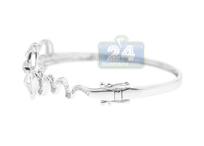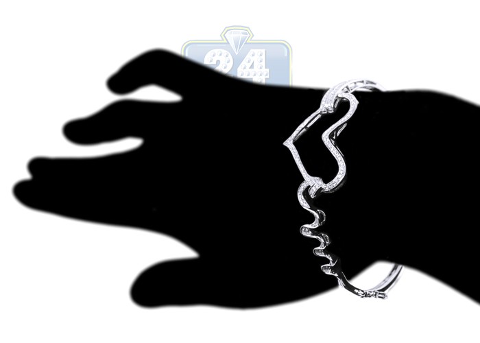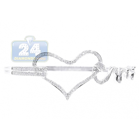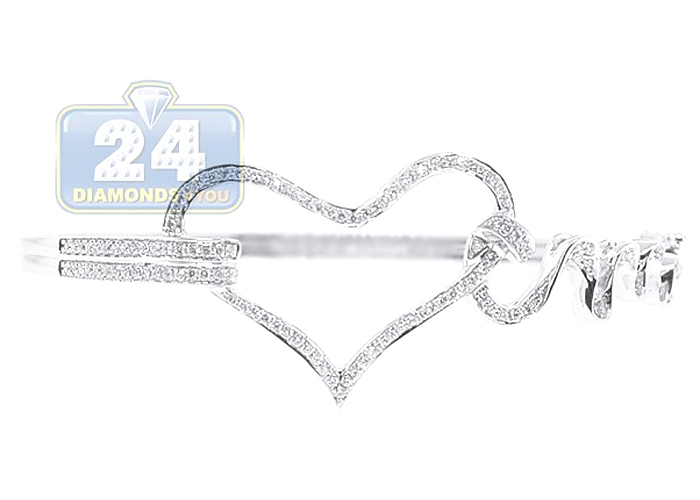 14K White Gold 0.63 ct Diamond Womens Heart Bangle Bracelet