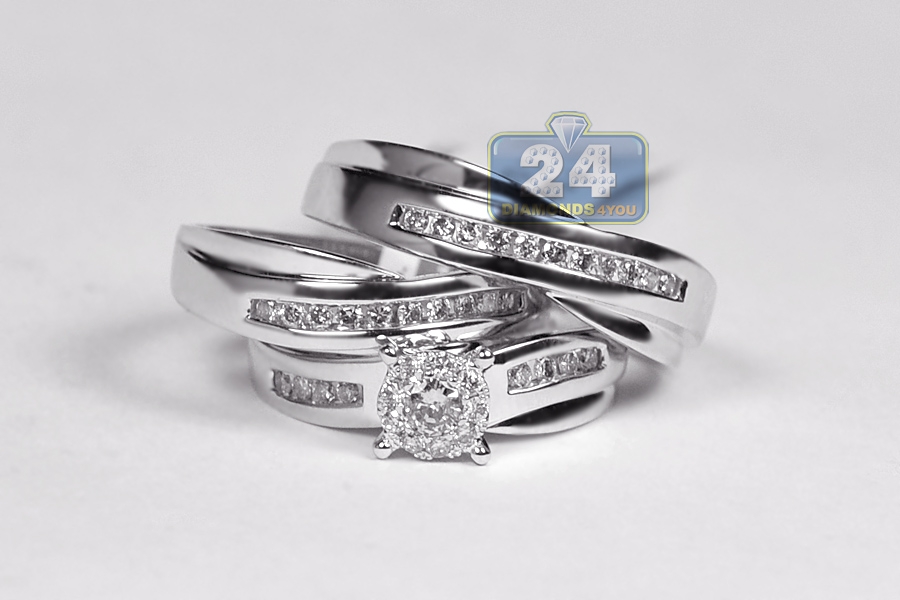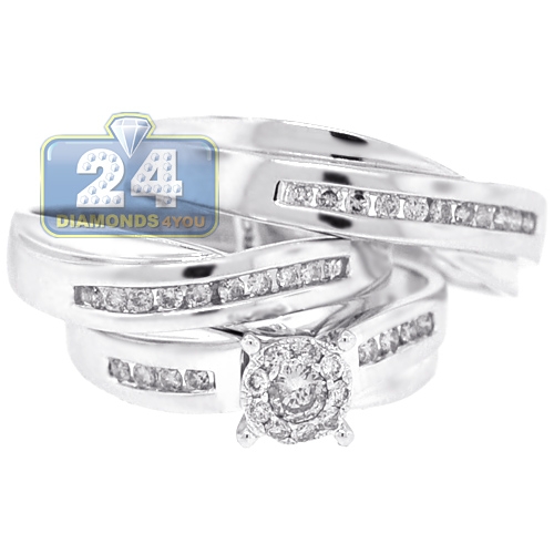14K White Gold 0.64 ct Diamond Bridal 3 Rings Set