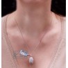 Our unique diamond drop pendant features oval nut motif. Masterly rendered in precious 14 karat white gold, the top and the bottom halves have matte finish. The oval drop pedant is paved with 0.69 carat of gleaming white round brilliant-cut natural diamonds, SI1-SI2 clarity and G-H color. This women's diamond pendant measures 33 mm in dangling length, and the oval is 23 x 13 mm. Add an extraordinary touch to your look!