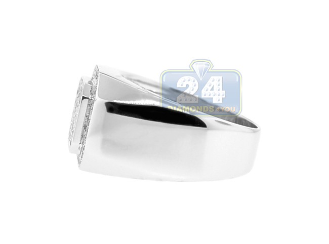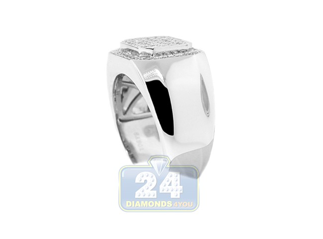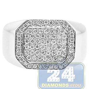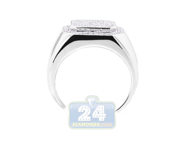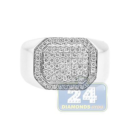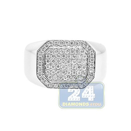 14K White Gold 0.71 ct Diamond Mens Rectangle Signet Ring