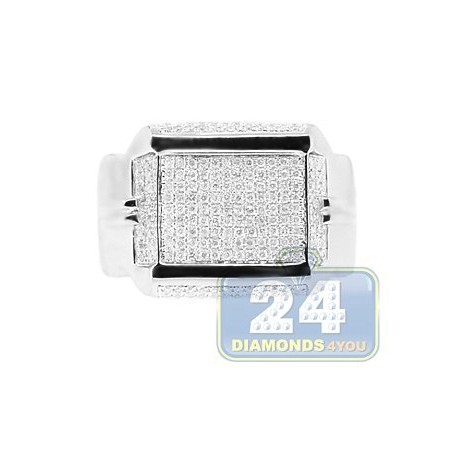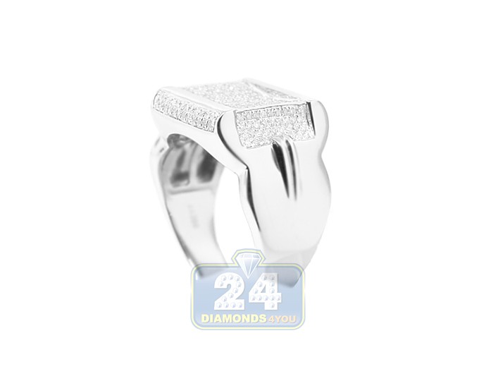 14K White Gold 0.73 ct Round Diamond Mens Rectangle Ring
