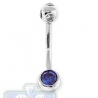 14K White Gold 0.75 ct Blue Sapphire Diamond Womens Belly Ring