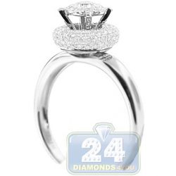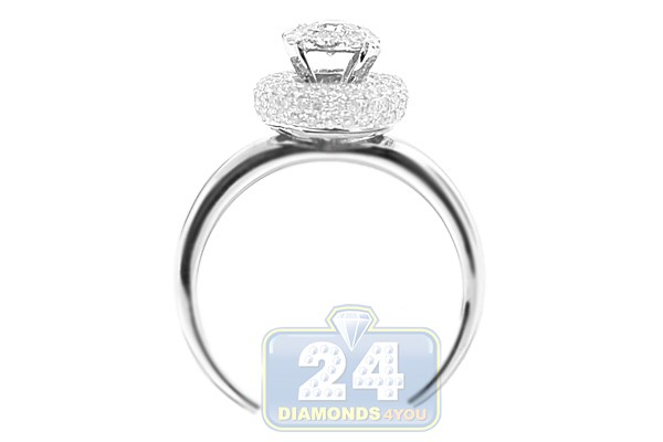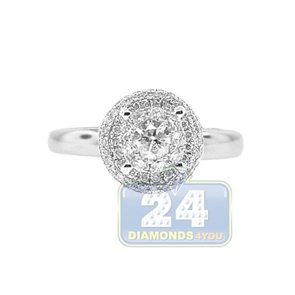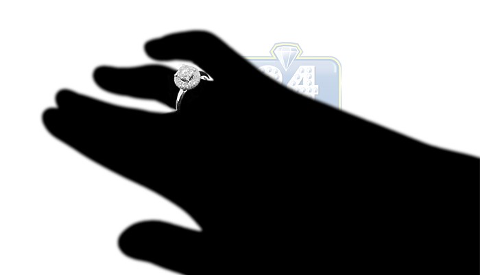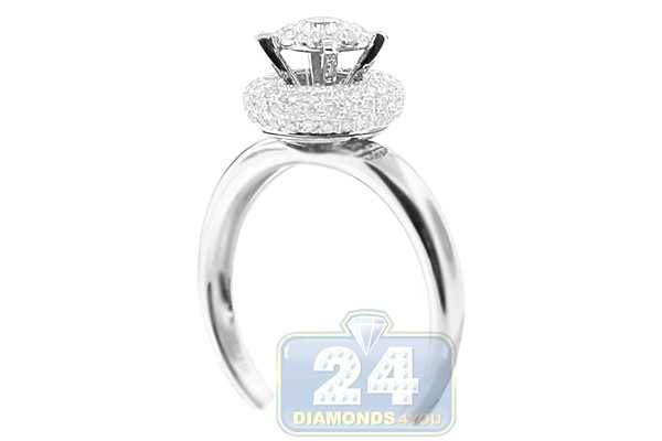 Express your feelings in the most beautiful way with this stunning engagement ring! The round shaped center piece is skillfully high mounted in a crown setting with a cluster of icy white and eye clean diamonds with G-H color and SI1-SI2 clarity. Its setting is professionally handmade of 14k white gold with perfectly polished finish. All brilliants are totaling 0.75 carat.