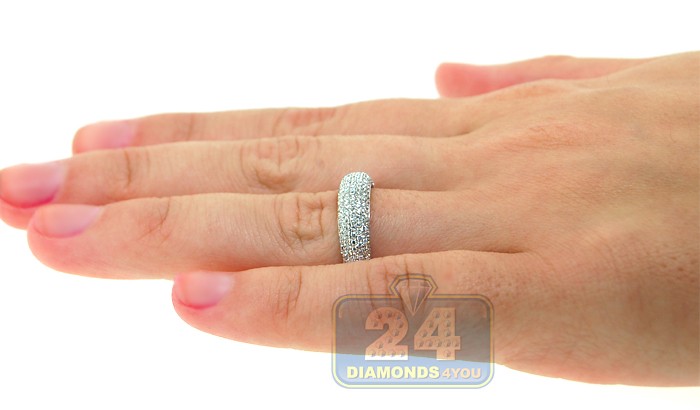 14K White Gold 0.77 ct Diamond Womens Wide Band Ring