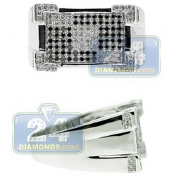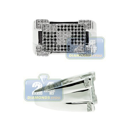 14K White Gold 0.80 ct Black Diamond Mens Rectangle Ring