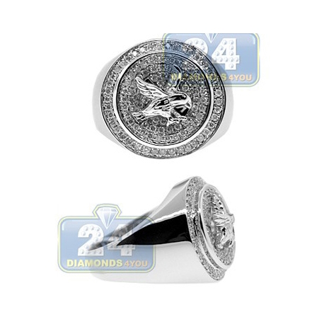 14K White Gold 0.80 ct Diamond Mens Round Eagle Ring