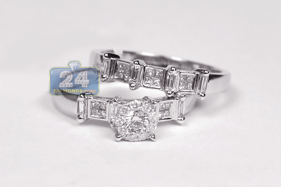 14K White Gold 0.81 ct Diamond Womens Engagement 2-Rings Set