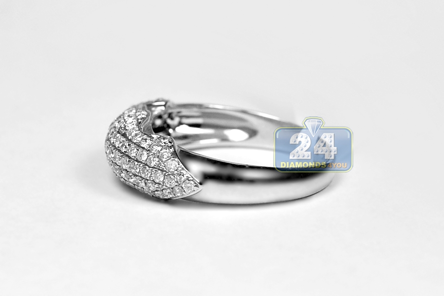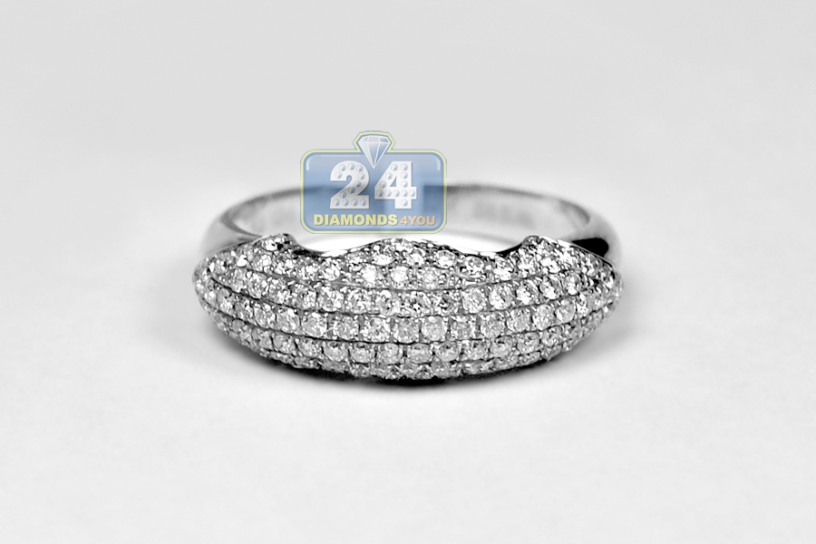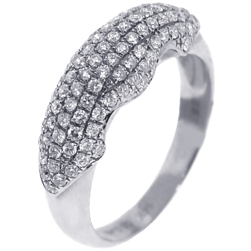 14K White Gold 0.81 ct Pave Diamond Womens Dome Ring