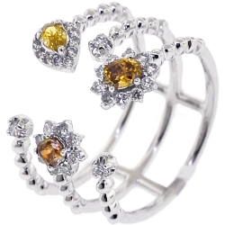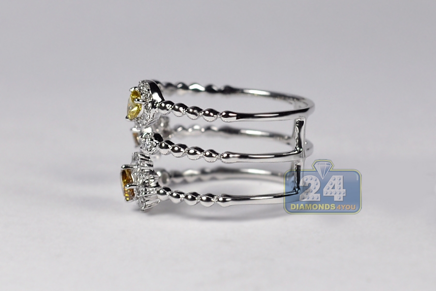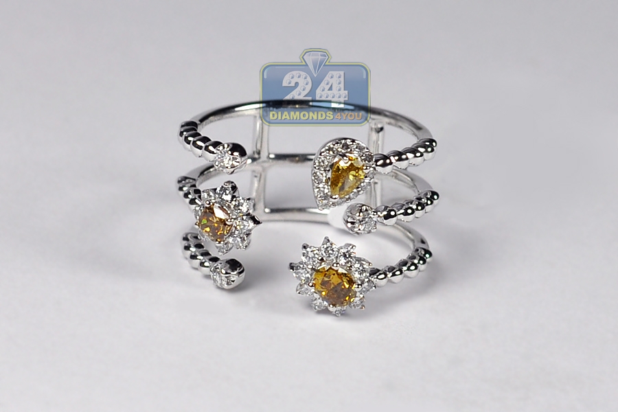 14K White Gold 0.83 ct Canary Diamond 3 Rows Open Cuff Ring