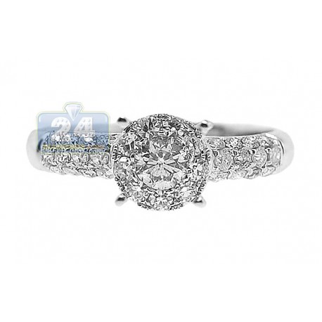 14K White Gold 0.83 ct Round Diamond Cluster Engagement Ring