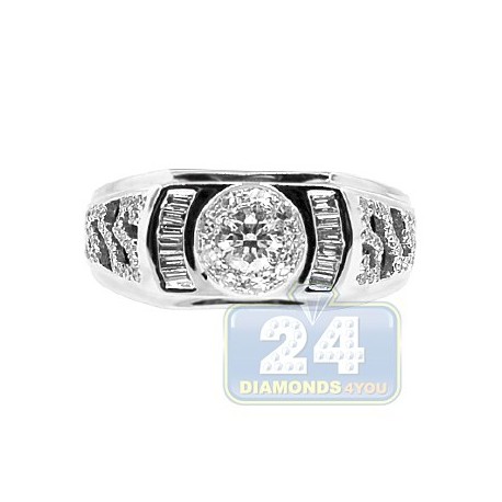 14K White Gold 0.84 ct Baguette Round Cut Diamond Mens Ring