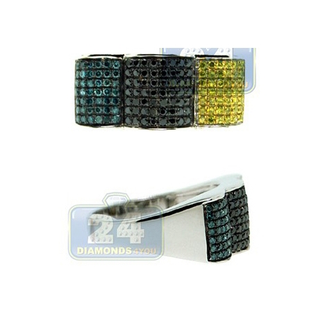 14K White Gold 0.85 ct Black Blue Yellow Diamond Mens Ring