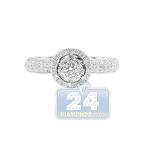 14K White Gold 0.85 ct Diamond Cluster Engagement Ring
