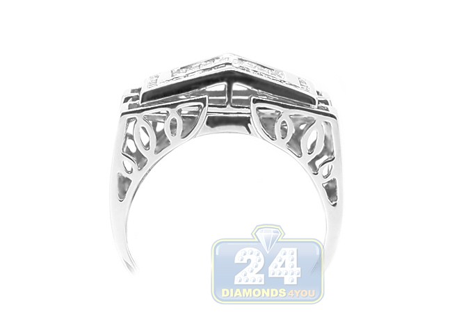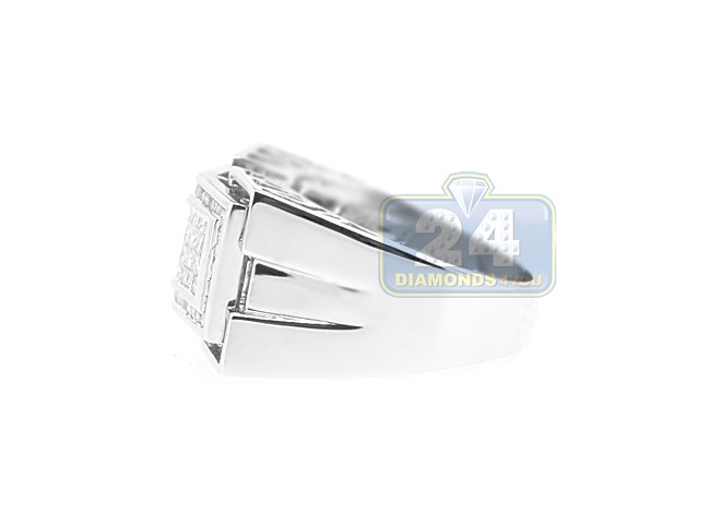 14K White Gold 0.85 ct Diamond Mens Rectangle Ring