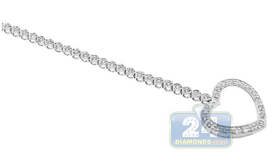 14K White Gold 0.88 ct Diamond Heart Womens Tennis Bracelet