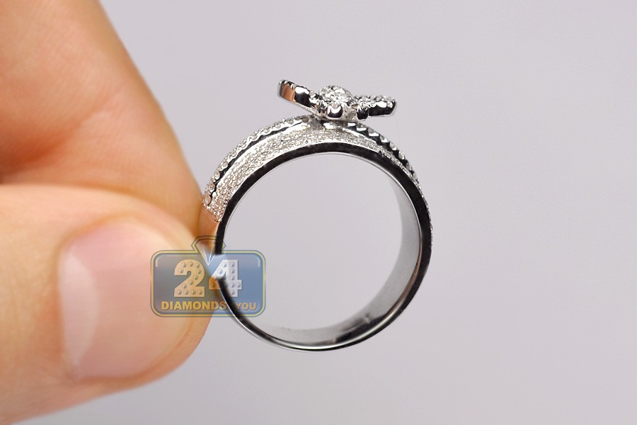 14K White Gold 0.90 ct Pave Diamond Bow Womens Ring