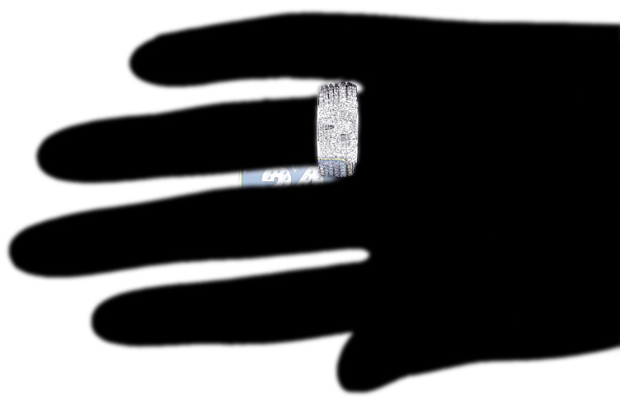 Our stylish multi-row women's ring features absolutely gorgeous bow in the center! The ring is masterly handmade of cool 14k white gold with perfectly polished finish, and gorgeously accented with rows of natural white round cut diamonds weighting 0.90 carat in total. Each brilliant features SI1-SI2 clarity and G-H color. What a glamorous addition to your daily look!