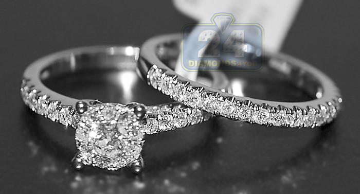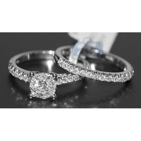 14K White Gold 0.90 ct Diamond Engagement Ring Set