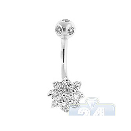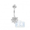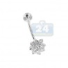 14K White Gold 0.90 ct Diamond Cluster Flower Belly Ring