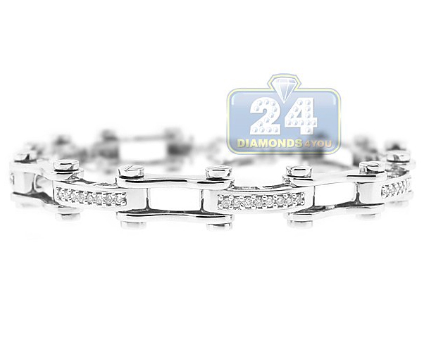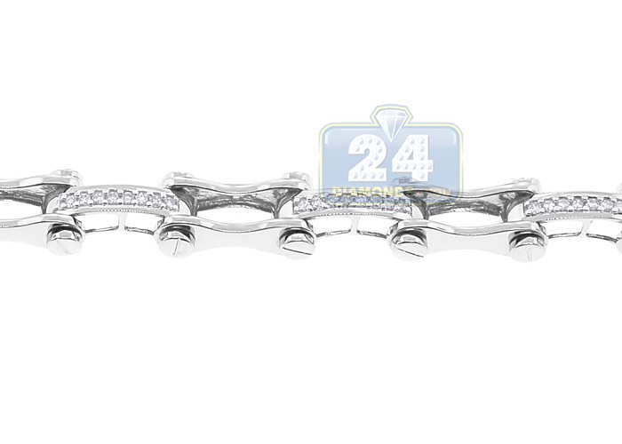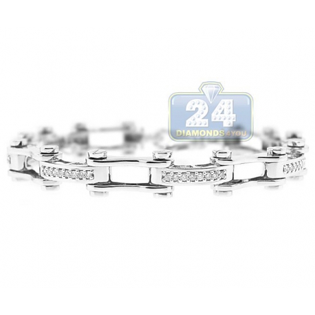 14K White Gold 0.93 ct Diamond Bicycle Link Mens Bracelet