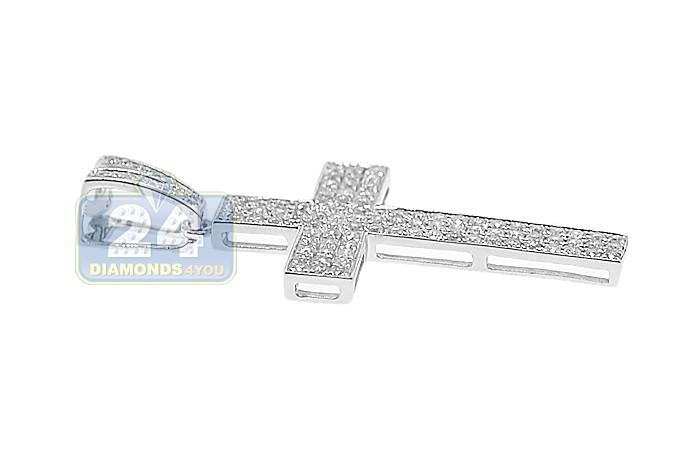 14K White Gold 0.93 ct Diamond Latin Cross Mens Pendant