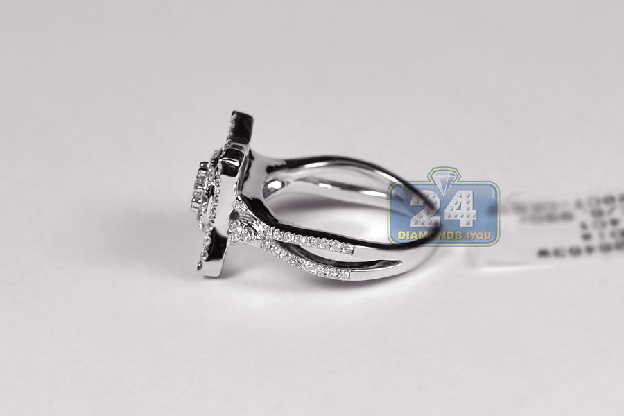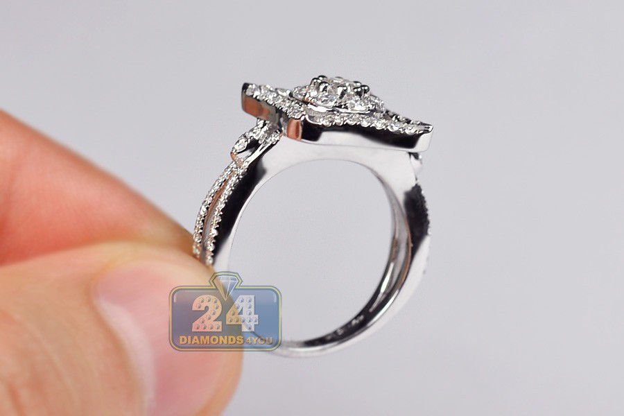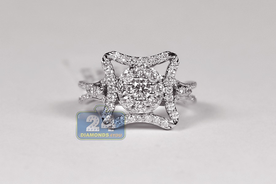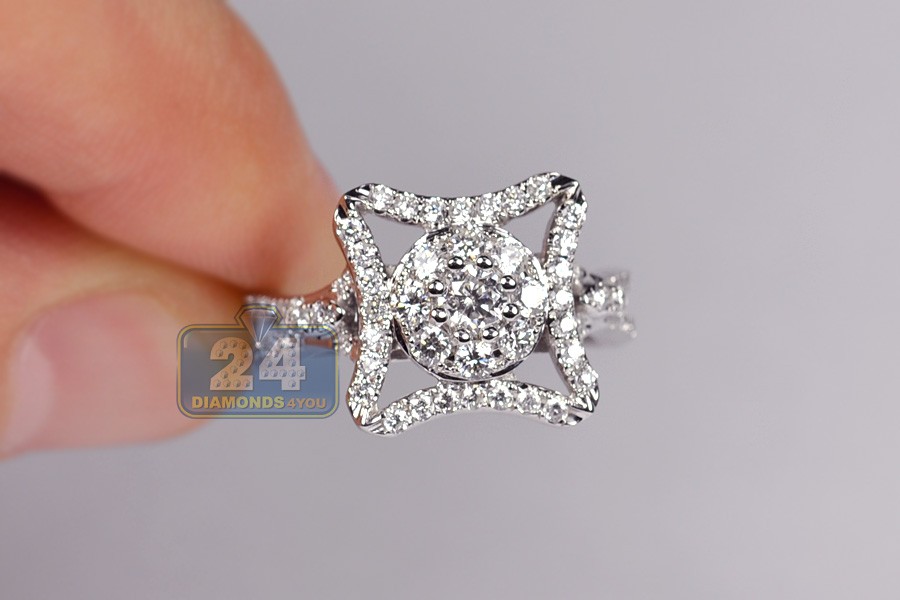 Thrill her with this splendid diamond engagement ring, and she's sure to say yes! Our beautiful jewel is skillfully handmade of cool 14k white gold, finished with high polish, and handset with 76 pieces of genuine round cut diamonds. Each brilliant features SI1-SI2 clarity and G-H color that makes all stones absolutely sparkling and gorgeously eye clean. What a stylish symbol of love!