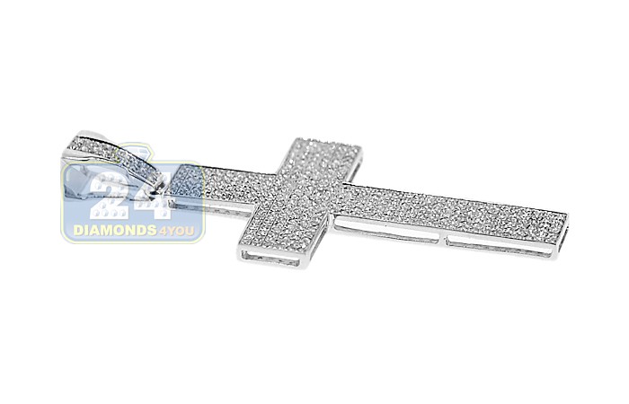 14K White Gold 0.96 ct Diamond Pave Latin Cross Pendant