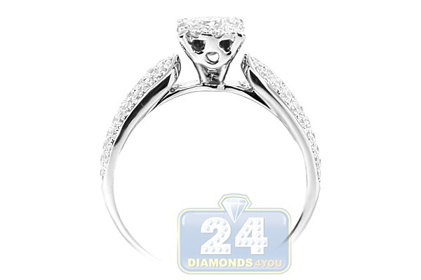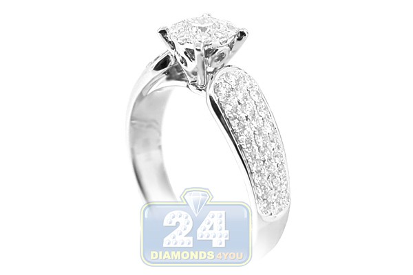 14K White Gold 0.99 ct Diamond Cluster Engagement Ring