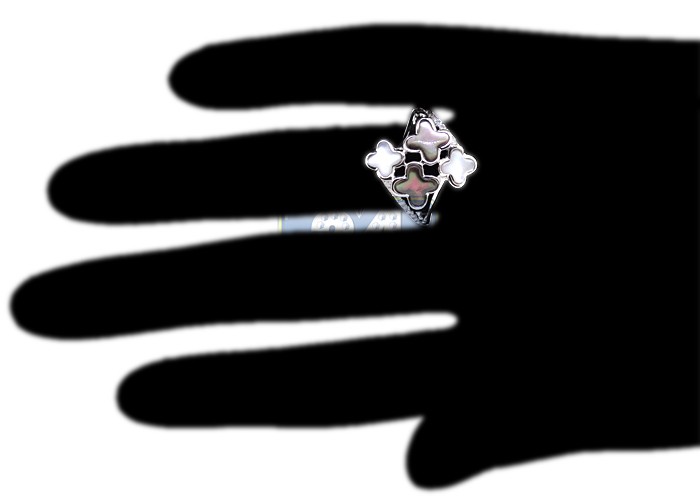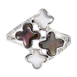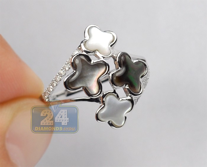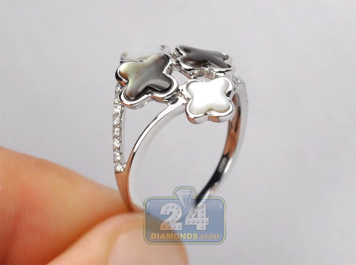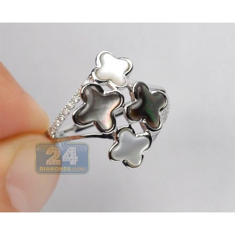 14K White Gold 0.20 ct Diamond Multicolored Opal Clover Ring