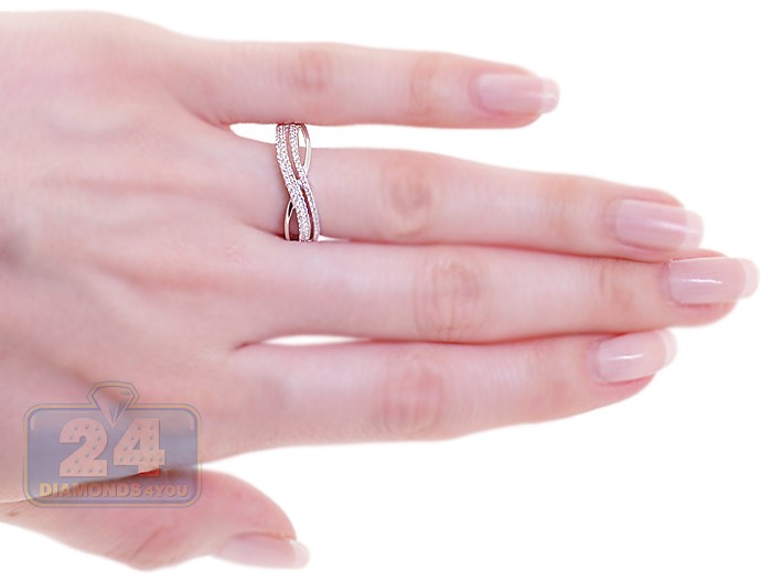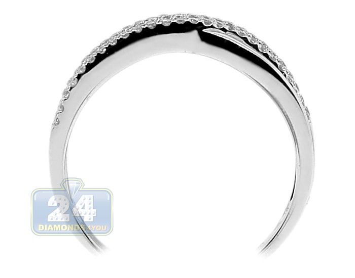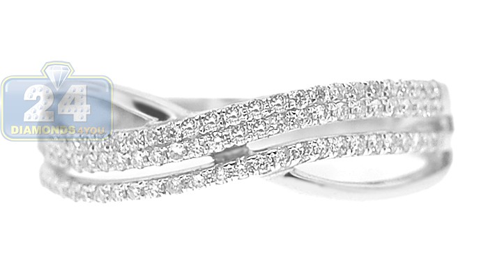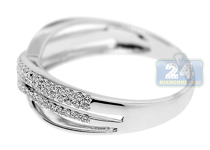 14K White Gold 0.30 ct 3 Row Diamond Criss Cross Band Ring