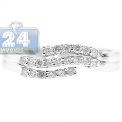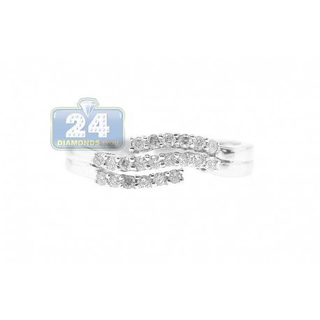 14K White Gold 0.30 ct 3 Row Diamond Wave Womens Band Ring