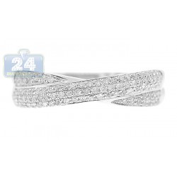 14K White Gold 0.30 ct Diamond Womens Criss Cross Band Ring