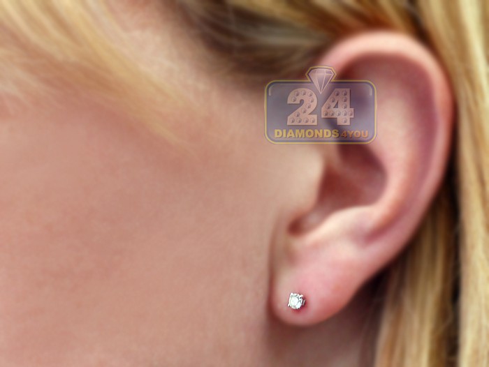 Essential for any jewelry wardrobe, diamond stud earrings never go out of fashion and are always graceful and appropriate! This pair is framed by cool 14 karat white gold with highly polished smooth finish. Our women's small studs are 4-prong set with icy white round brilliant-cut genuine diamonds (VS2-SI1 clarity, G-H color), both totaling 0.33 carat. They also have screw backs. Perfect for a gift or a treat for yourself!