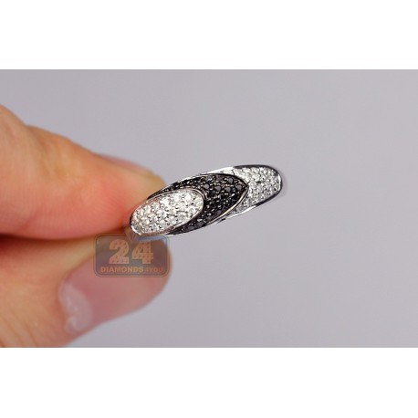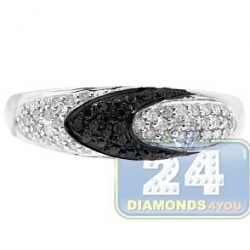Amazingly contrasting colors make this lady's band absolutely eye catching! The ring is artfully designed cool 14k white gold with highly polished shiny finish, and skillfully accented with a gorgeously mixed natural icy white and black round cut diamonds weighting approximately 0.36 carat in total. The layered pattern of this jewelry piece makes it perfect to wear for any occasion!