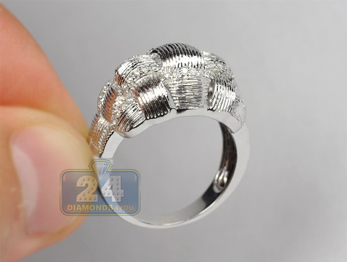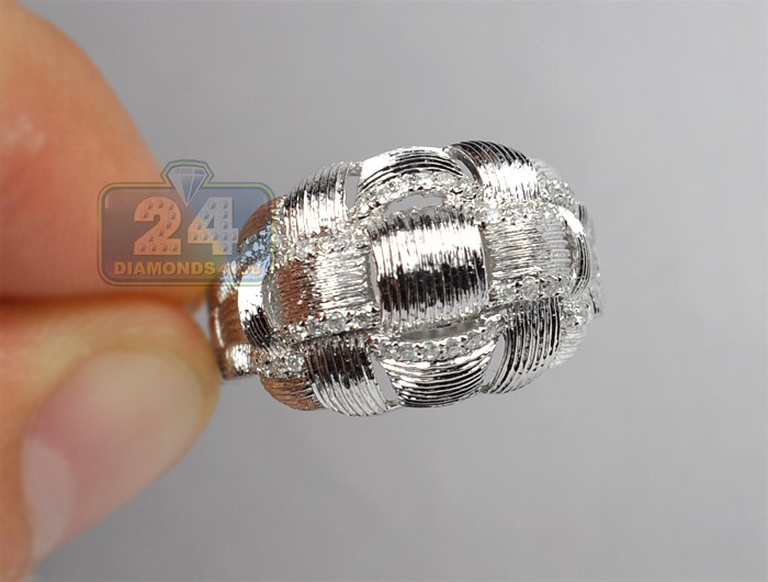 14K White Gold 0.38 ct Diamond Striped Knot Womens Ring