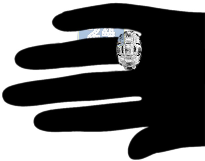 You are looking at the one of a kind knot design! This impressive ring uniquely shaped with fancy a striped pattern, gorgeously handmade of lustrous 14k white gold, has high polished finish, and masterly accented with 0.38 carat of genuine round cut brilliants of SI1-SI2 clarity and G-H color. Enjoy such a stunning state of art jewelry piece!