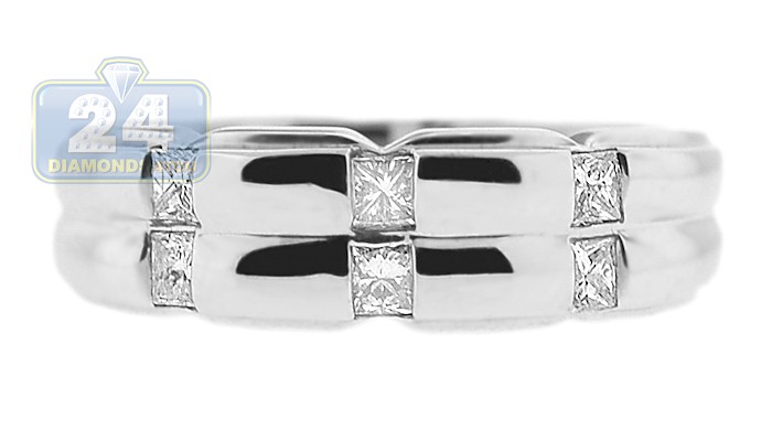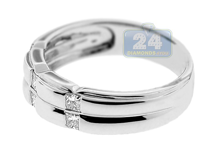 14K White Gold 0.38 ct Princess Cut Diamond Mens Band Ring