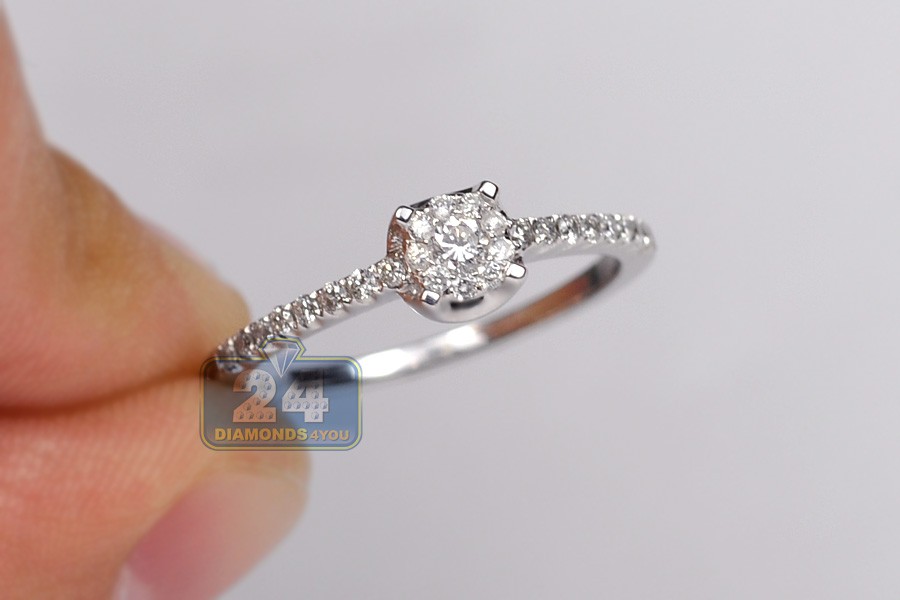 14K White Gold 0.40 ct Diamond Cluster Engagement Ring