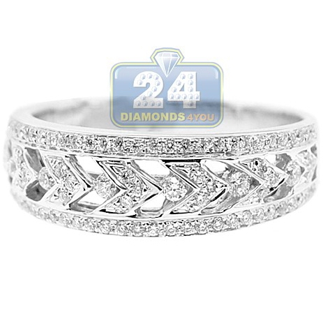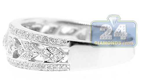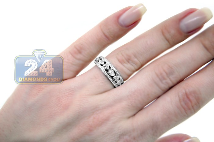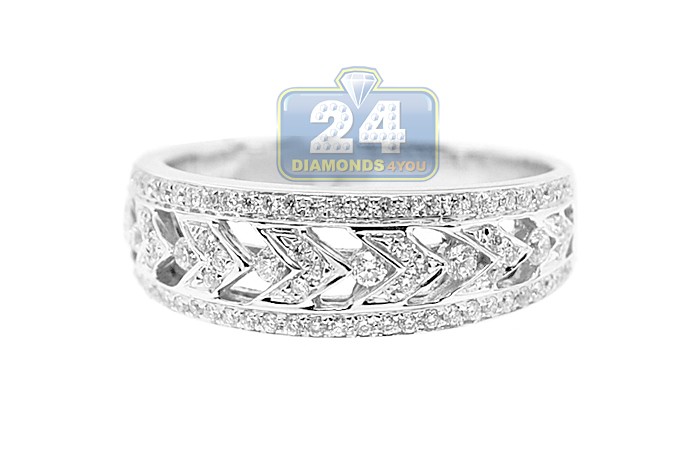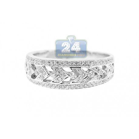 Elegant and alluring, this antique styled women's band features and intricate design that is always in fashion! The ring is professionally crafted in cool 14k white gold with highly polished finish, and gorgeously accented with natural icy white round cut diamonds weighting 0.40 carat in total. Each brilliant is sparkling and eye clean, with SI1-S2 clarity and G-H color. Add such a timeless jewelry piece to your collection of rings!