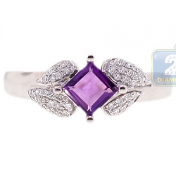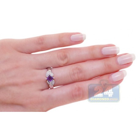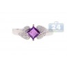 14K White Gold 0.43 ct Purple Amethyst Diamond Womens Ring