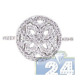 14K White Gold 0.46 ct Diamond Womens Round Flower Ring