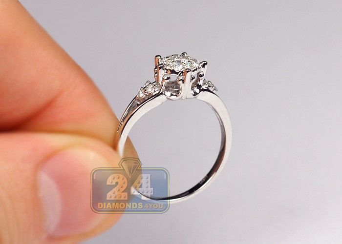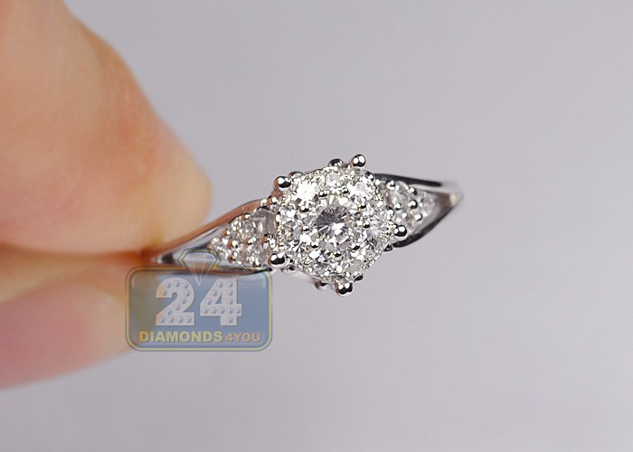 14K White Gold 0.48 ct Diamond Womens Cluster Engagement Ring